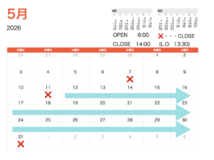 5月の営業日です☕️🩵 ❌がお休みとなります。 5月第3週目〜6月第1週目あたりまでお休みをいただきます🙏 5月の最終営業日は10日(日)となります。ご不便をおかけしますが、よろしくお願いいたします。 そして6月から […]
